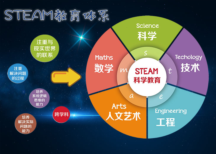 使用目前改良版STEAM教育體系來(lái)完成課程,培養(yǎng)孩子的科學(xué)、技術(shù)、工程、人文藝術(shù)、數(shù)學(xué)方面的學(xué)識(shí)